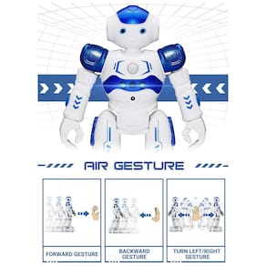Controle remoto e controle de gestos com as mãos Este robô com detecção de gestos não só pode ser controlado pelo controlador infravermelho, mas também pode virar à esquerda, virar à direita, deslizar para trás e para frente de acordo com os comandos de seus gestos com as mãos. Multi função inclui exibição automática e prevenção de obstáculos também. Os olhos do robô de brinquedo iluminam se com um LED azul brilhante quando ele se move. Programação inteligente Este brinquedo robô inteligente pode demonstrar um conjunto de 50 ações inseridas pelo usuário. Se você alternar a função de programação, este robô interativo reproduzirá usando seu recurso de registro de movimentos para repetir o movimento um por um conforme você criou, como virar à esquerda vire à direita caminhe para frente caminhe para trás patrulha dança e muitos outros modos de ação que você selecionou. Material premium e ecológico este robô de controle remoto é feito de plástico ABS não tóxico e durável, com múltiplas articulações flexíveis nos ombros, cotovelos e polegares, e as rodas de patinação na parte inferior são bastante resistentes para executar bem uma variedade de combinações de movimentos. Este robô brincalhão realmente diverte seus filhos e traz alegrias infinitas. Conveniente robô de brinquedo recarregável este robô RC é alimentado por baterias embutidas. Conecte diretamente à interface de carregamento USB como seu banco de energia, plugue, computadores. A maneira recarregável economiza seu dinheiro para baterias e você só recarrega o robô cerca de 2 horas, e seu tempo de jogo é de cerca de 60 minutos Marca: Não Informado