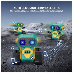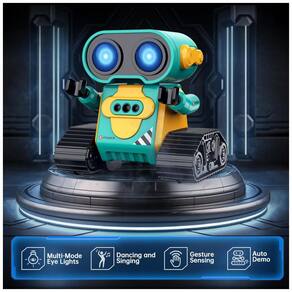 O Robô Multifuncional é uma incrível opção de entretenimento! Seus olhos grandes e engraçados se acendem assim que você liga o robô, proporcionando uma aparência adorável, principalmente à noite. Este robô é capaz de cantar diferentes músicas com um botão musical. No modo de demonstração, ele fará giros de 360 graus, dançando com braços flexíveis. Além disso, possui vários modos de luz nos olhos que mudam automaticamente, tornando-o muito fofo. Com um design único e divertido, este robô possui uma aparência encantadora, com grandes olhos engraçados e braços flexíveis. Você até pode colocar algo em suas mãos para deixá-lo ainda mais legal! As rodas grandes e duráveis permitem que o robô se mova para frente, para trás, para a esquerda e para a direita com facilidade. As canções vão encantar seu bebê. Combinando uma aparência fofa, belos olhos grandes, membros flexíveis e uma função de voz inteligente, seu bebê vai adorar este robô. O Sensor de Gestos permite uma interação divertida! Ao pressionar o botão de gestos no controle, o robô entra no modo de sensor de gestos. Coloque a mão na frente do robô e mova-a, o robô irá se mover. Se você retirar a mão, o robô irá segui-la; se você mover a mão ao redor do robô, ele irá girar junto. Muito interessante! Essa funcionalidade vai despertar bastante o interesse das crianças. Fácil de operar, com controle remoto de 2,4GHz, as crianças podem controlar facilmente o robô para se mover e dançar. O robô ainda emite sons engraçados de vez em quando para fazer as crianças rirem. É possível pressionar o botão do olho LED por mais tempo para alternar automaticamente entre os modos de luz nos olhos. Ideal para crianças de 3 anos ou mais, este Robô Hamourd é um presente perfeito para aniversários, Natal ou festivais. Mais do que apenas diversão, este brinquedo é educativo e uma opção melhor do que um robô-cachorro. Além disso, a embalagem é exquisita e inclui: 1 robô controlado por controle remoto, 1 controle remoto, 1 chave de fenda, 1 manual do usuário e pilhas para o controle.