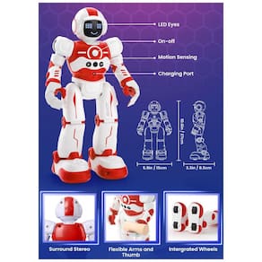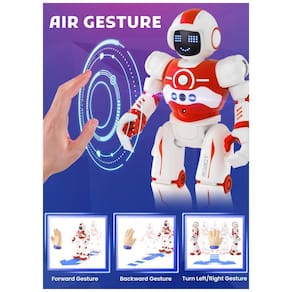 Controle Remoto e Controle por Gestos Manuais: Este robô com sensor de gestos pode ser controlado tanto pelo controle remoto infravermelho quanto pelos gestos da mão. Ele pode virar para a esquerda, virar para a direita, deslizar para trás e para frente de acordo com os comandos de gestos. Possui diversas funções, como exibição automática e desvio de obstáculos. Os olhos do robô se iluminam com LED azul brilhante enquanto se move. Programação Inteligente: Este brinquedo de robô inteligente pode demonstrar um conjunto de 50 ações inseridas pelo usuário. Ao alternar a função de programação, o robô interativo repetirá os movimentos um por um, como virar para a esquerda, virar para a direita, andar para frente, andar para trás, patrulhar, dançar, entre outros. Material Premium: Feito de plástico ABS atóxico, com articulações flexíveis nos ombros, cotovelos e polegares, e rodas de patinação resistentes na base para realizar diversas combinações de movimentos. Este robô divertido entretém as crianças e traz alegria sem fim. Brinquedo Robô Recarregável: Este robô é alimentado por baterias recarregáveis internas. Carregue diretamente na interface USB, como banco de energia, tomada ou computador. O modo de recarga economiza dinheiro em pilhas e o robô precisa apenas de cerca de 2 horas para recarregar, com tempo de reprodução de aproximadamente 60 minutos. Presente de Aniversário Ideal: O robô de controle infravermelho é versátil e animado, pode dançar, cantar, andar, patrulhar e até falar. Cada robô mede 15cm x 8,4cm x 27cm. Um companheiro íntimo para crianças, proporcionando muita diversão e aprendizado.