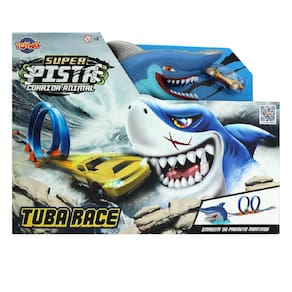 A diversão está garantida com a Super Pista Corrida Animal Tubarão da Toyng. O desafio é passar ileso por um terrível Tubarão com presas afiadas. A brincadeira começa colocando o carrinho na plataforma que gera um impulso muito forte ao ser lançado. Será que o Tubarão vai vencer? Desafie o Tubarão, e vença essa corrida! Imagens meramente ilustrativas