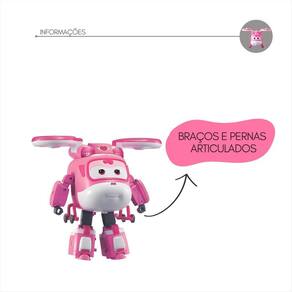 Com design detalhado e transformações simples, a criança pode alternar entre o modo robô e o modo avião quantas vezes quiser, recriando suas cenas favoritas do desenho ou inventando novas missões de resgate pelo céu. Além disso, o tamanho é perfeito para as mãozinhas dos pequenos, tornando a brincadeira prática e empolgante.