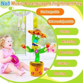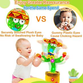 Este brinquedo interativo de imitações de cactos é o companheiro perfeito para entreter e inspirar seu pequeno por horas a fio. O brinquedo de cacto falante imita o que seu bebê diz, dando risadas e risadas que cativarão seu pequeno. Com 120 músicas em inglês, o brinquedo Talking Repeat Singing Cactus cria uma experiência de aprendizagem interativa que facilita o desenvolvimento da linguagem. Projetado para incentivar o levantamento da cabeça, o brinquedo de cacto dançante é ideal para fortalecer os músculos essenciais do pescoço e estimular as habilidades motoras para engatinhar e alcançar com confiança. O cacto falante tem o tamanho certo para mãos pequenas e rapidamente se tornará o companheiro favorito do seu filho. Com seu design colorido e característica brilhante, o brinquedo Cactus Baby chama a atenção do seu filho, tornando-o o brinquedo perfeito para envolver seus sentidos. Este brinquedo de cacto falante é um excelente presente que manterá seu filho envolvido e entretido por horas a fio. Coloque suas mãos no brinquedo de cacto falante dançante agora e dê ao seu pequeno um companheiro que é ideal para brincadeiras e desenvolvimento da linguagem. Qualidade segura para crianças: Feito de materiais premium, nosso brinquedo de imitação de cacto falante dançante garante prazer duradouro. Seu tecido de pelúcia de alta qualidade e alta qualidade garante segurança e confiança durante a hora de brincar. Aprendizagem interativa: nosso brinquedo de cacto cantante Talking Repeat estimula o aprendizado interativo, promovendo habilidades de linguagem e desenvolvimento cognitivo. Com recursos de fala, repetição e canto, oferece entretenimento infinito enquanto melhora as habilidades de linguagem. Estimulação aprimorada: o recurso de dança brilhante do nosso brinquedo de cacto cativa os bebês, proporcionando estimulação visual e auditiva. Esta interação dinâmica promove o desenvolvimento sensorial e o envolvimento, promovendo o aprendizado precoce de uma maneira agradável. Cesta de Páscoa ideal para bebês pequenos: nosso charmoso brinquedo de cacto falante dançante traz risadas e diversão interativa. A maneira perfeita de iluminar a celebração da Páscoa - Brinquedo de bebê de cacto falante recarregável com volume ajustável: é recarregável, sem necessidade de substituições constantes de bateria. E você também pode controlar o volume do cacto falante para atender às preferências do seu filho e ao meio ambiente, garantindo uma experiência confortável e agradável para todos - Olhos de pelúcia seguros e protegidos: nosso brinquedo de cacto falante apresenta olhos de pelúcia costurados com segurança, eliminando qualquer risco de desprendimento ou engolir para bebês e crianças pequenas. O design aprovado pelos pais prioriza a segurança! O material macio e durável garante uma experiência de jogo suave - Material seguro para crianças e estrutura durável: o brinquedo de cacto falante é feito de tecido de pelúcia de alta qualidade, garantindo brincadeiras seguras e duradouras - Companheiro interativo para bebês e crianças: o brinquedo de cacto Vitosup é projetado para ser divertido e dinâmico para as crianças. A combinação de dança, repetição, luzes coloridas e música cativante pode cativar a atenção da criança e proporcionar horas de diversão - Brinquedo versátil para dançar, cantar e imitar: o cacto pode cantar uma vasta seleção de músicas, pode dançar com o ritmo musical, pode repetir o que você diz em uma voz engraçada, incentivando o riso e o envolvimento com seu filho - Estimulação sensorial aprimorada: o cacto falante dançante pode envolver os sentidos do seu bebê com luzes coloridas, música animada e respostas interativas, incentivando as crianças a interagir com o cacto enquanto promove o desenvolvimento cognitivo e a exploração sensorial - Fácil de usar: basta carregar o brinquedo de cacto totalmente e depois ligar o botão na parte inferior, há 3 etiquetas no cacto que representam 3 botões de controle: gravar, reproduzir e trocar música, ajustar o volume. As funções são as seguintes: etiqueta superior - pressione a parte superior inferior para aumentar / diminuir o volume; etiqueta esquerda - pressione para gravar quando nenhum som for detectado, solte para parar, pressione para reproduzir, pressione e segure para excluir quando nenhum som for detectado (gravação máxima de 18S); Etiqueta direita - pressione para reproduzir música e alternar músicas - O cliente está em primeiro lugar! Estamos aqui para garantir sua satisfação. Se você tiver alguma dúvida ou precisar de ajuda, ou se precisar de uma substituição por qualquer motivo, basta entrar em contato conosco e forneceremos uma solução rápida e amigável. Sua felicidade é nossa maior prioridade!