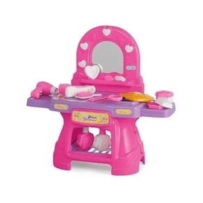 Brinquedo tateti mini glamour penteadeira infantil 330 o brinquedo e seus acessórios aproximam a criança da realidade, desenvolvendo habilidades como coordenação motora e noção de espaço. Além disso, estimula a percepção. Com a penteadeira mini glamour calesita as meninas irão se arrumar para a brincadeira, com seu próprio salãozinho de beleza com vários acessórios de plástico, espelho, porta-objetos e espaço para guardar acessórios. A penteadeira mini glamour calesita estimula a prática de roles sociais através da imaginação e fantasia. Imagem meramente ilustrativa. Código de barras: 7898664630748 código de referência: 330 marca: tateti modelo: penteadeira infantil mini glamour idade: +3 anos certificado: ce-bri/innac - 02008-03a nm 300/2002 ocp 0061 conteúdo: 1 penteadeira, 2 abas laterais 1 prancha 1 secador 1 escova 1 pente 2 presilhas 1 pulseira 2 frascos com tampa 2 porta joias com tampa , lacrado e com.