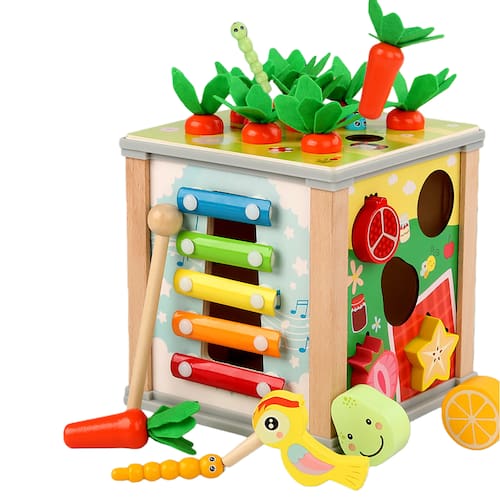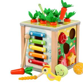 Especificação Material: madeira de faia + MDF Cor: cores misturadas Tamanho do pacote: 15,5 x 15,5 x 16 cm Peso da embalagem: 0,81 kg Lista de embalagem: 1 x brinquedo Treasure Box Esta caixa de tesouro multifuncional 6 em 1 é um brinquedo educacional ideal para crianças. Ele oferece uma variedade de atividades, incluindo separar miçangas, capturar insetos e tocar xilofone, que ajudam a aprimorar as habilidades motoras finas, o reconhecimento de formas e a coordenação olho-mão. Feito de madeira de faia e MDF de alta qualidade, este brinquedo é seguro, durável e feito para durar. Seu design multicolorido adiciona apelo visual, mantendo as crianças envolvidas enquanto aprendem por meio de brincadeiras interativas, incentivando sua criatividade e imaginação. A caixa do tesouro apresenta várias seções interativas, como combinação de formas e classificação de miçangas, que promovem o desenvolvimento cognitivo. É uma ótima ferramenta para apresentar às crianças conceitos básicos de números, formas e cores de uma forma divertida e envolvente. Com um tamanho compacto de 15,5 x 15,5 x 16 cm e um peso de 810 g, este brinquedo é fácil de manusear para crianças. É leve e portátil, o que o torna perfeito para uso doméstico, pré-escolas ou entretenimento em qualquer lugar, oferecendo diversão e valor educacional. Esta caixa de tesouro multifuncional 6 em 1 é um excelente presente para crianças pequenas. Ele incentiva o aprendizado precoce de uma forma divertida e prática, ajudando as crianças a desenvolver habilidades essenciais, como resolução de problemas, coordenação motora e pensamento cognitivo.