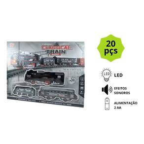 Jogo 20 Peças: 3 Vagões (1 Locomotiva +2 vagões de carga) + Trilhos