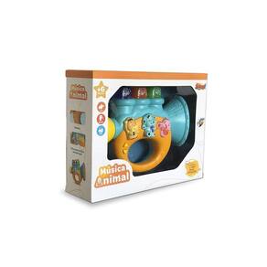 Características do brinquedo: - possui 03 três botões em seu interior que, ao apertá-los, produz sons de diferentes canções. - ao apertar o botão change-over, toca 04 quatro diferentes canções. - possui 03 três teclas em cima de animaizinhos que, ao serem pressionadas, o som é emitidos de acordo com o bichinho escolhido piscando as luzes. - requer 03 três pilhas aa pilhas não inclusas . - recomendação: indicado para crianças a partir de 03 anos.