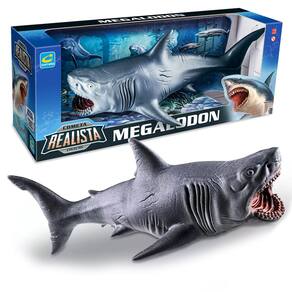 • Lindo Tubarão Megalodon em Vinil rígido e resistente, com tamanho incrível de 45 cm, com detalhes realista que deixa o brinquedo com uma excelente aparência ao animal real.