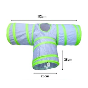 Brinquedo Túnel T para Gatos Cinza com Verde A3E Imports O Brinquedo Túnel T para Gatos da A3E Imports é a escolha perfeita para proporcionar diversão e exercício ao seu felino. Com um design único em formato de T, este túnel oferece múltiplas entradas e saídas, garantindo uma experiência de brincadeira envolvente e . Compre Agora seu Brinquedo Túnel T para Gatos A3E Imports: Transformando Qualidade em Confiança Características: Três entradas e saídas diferentes para brincadeiras mais interativas e envolventes. Feito de poliéster resistente, suportando arranhões e mordidas, garantindo longa durabilidade. Dobrável e leve, permitindo fácil transporte e armazenamento quando não estiver em uso. Benefícios: Incentiva seu gato a correr, se esconder e explorar, ajudando a manter um peso saudável e evitar o tédio. Promove o instinto natural de caça do gato, oferecendo um ambiente seguro para perseguir e emboscar. Proporciona um espaço seguro para o seu gato se esconder e relaxar, reduzindo a ansiedade e o . Modo de Uso: Abra o túnel e coloque-o em uma área segura e espaçosa onde seu gato possa brincar livremente. Incentive seu gato a explorar o túnel com brinquedos ou petiscos. Observe seu gato correndo e se escondendo pelo túnel, garantindo que ele esteja seguro e se divertindo. Quando não estiver em uso, dobre o túnel para facilitar o armazenamento. Compre Agora seu Brinquedo Túnel T para Gatos A3E Imports: Transformando Qualidade em Confiança Ofereça ao seu gato momentos de pura diversão e exercício com o Brinquedo Túnel T para Gatos da A3E Imports. Com seu design inovador e atrativo, este túnel vai manter seu felino entretido e saudável.