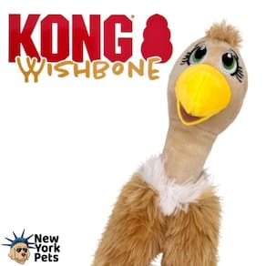 KONG Wishbone é um brinquedo indicado para cães de mordida leve a moderada. Possui um formato perfeito para brincadeiras de jogar e trazer e chacoalhar, assim como algumas lutas. Possui uma corda pelo seu corpo o que o torna mais resistente para brincadeiras de cabo de guerra. A corda também satisfaz instintos naturais dos cães. Possui um apito para aumentar o estímulo.
