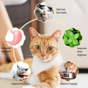 - Design prático: o brinquedo para gatos pode grudar facilmente na parede ou em outras superfícies com forte força viscosa, sem cair quando o gatinho lambe e brinca. Cobrir a tampa protetora contra poeira quando o brinquedo para gatos não está em uso pode prevenir eficazmente a poluição por poeira e a produção de odores. As bolas são giratórias em 360° ao serem lambidas