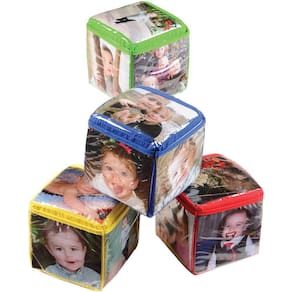 - BOLSOS PARA FOTOS - Cada bloco de construção possui um bolso de vinil transparente em cada lado para personalizar com fotos de familiares e amigos