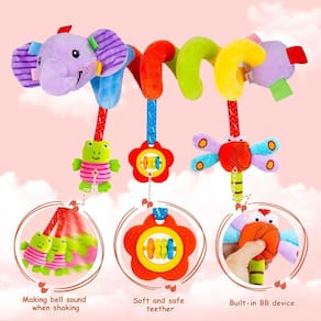 3+ Mês Baby Stroller Brinquedos Brinquedos macios e confortáveis com animais bonitos de cor brilhante. É fácil inspirar a curiosidade do seu bebê e cultivar a percepção de cor do bebê. É o melhor Natal para seu bebê. Brinquedos de assentos de carro espiral Esta atividade espiral brinquedos de som embutido (papel, chocalho, dispositivo BB), que pode dar aos seus filhos uma diversão e interação engraçadas quando eles estão fora ou entediados. Brinquedos para Cadeirinha & Carrinho Este brinquedo infantil vem com um clipe que pode ser cortado em um carrinho de bebê, cadeirinha ou berço de bebê. Também permite que o bebê segure o brinquedo e brinque com ele. Grandes Brinquedos Educativos Estes brinquedos pendurados levarão seu bebê a descobrir novas cores e padrões, e também desenvolverão sua força da mão através de habilidades como agarrar e puxar. Materiais macios e seguros Este brinquedo infantil é seguro, macio e tem uma textura interessante. É um bom presente para o seu bebê ajustar a emoção e desfrutar do prazer de se expressar.
