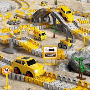 O que está incluído - Nossos brinquedos de construção incluem componentes flexíveis de pista de 200 PCS, 2 carros de corrida, 4 mini caminhões de construção, 8 sinais de trânsito, 2 árvores e uma ponte. Configuração avançada para seus filhos pequenos construírem seu próprio reino de construção!