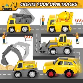 Mais acessórios, mais maneiras de jogar - O carro de corrida pode cruzar a ponte e as peças da pista podem ser flexionadas e quebradas para formar várias formas diferentes de pista. Cada caminhão tem braços de trabalho móveis. As crianças podem fingir que fazem todos os tipos de trabalhos de construção com esses caminhões e passarão horas trabalhando em brincadeiras criativas e imaginativas.