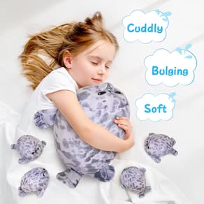 Conjunto de brinquedos de pelúcia macios para bebês, crianças pequenas, meninas e crianças — Cinco brinquedos em uma caixa requintada: 4 lindas focas na barriga da mamãe, abra o zíper e veja, que surpresa! As garotas absolutamente os amam e mal podem esperar para abraçá-los e brincar com eles. Este conjunto de brinquedos de pelúcia vem em uma caixa de presente delicada, perfeita para meninas de 3, 4, 5, 6, 7, 8 anos. - Brinquedos femininos de alta qualidade: todos os selos são feitos dos tecidos mais confortáveis e macios. Esses brinquedos de pelúcia são preenchidos com material macio de algodão PP na cabeça, torso e pés, muito macios ao toque. Essas bonecas de pelúcia são adequadas para festas de chá ou histórias e são ótimas para as meninas se abraçarem e brincarem. - Pelúcias fofas e macias: design exclusivo e engenhoso! Sua princesinha vai adorá-los porque são tão adoráveis. - Fácil de armazenar e transportar: o selo Mummy tem cerca de 15,7 pol/40 cm, os unicórnios bebês têm cerca de: 4,7 pol/12 cm; a estrutura compacta da embalagem e o peso leve o tornam mais conveniente de segurar. Coloque-os em mochilas e malas escolares, adequadas para muitas ocasiões, aviões, carros, restaurantes, etc. Ofereça uma ótima oportunidade de brincar, interagir e se comunicar com sua garota, compartilhar e ajudar uns aos outros. - Melhor ideia de presente: presente de aniversário ideal para todos os tipos de festival (Páscoa, Natal, sacola de presentes de Halloween, presentes de guloseimas ou doces, Ação de Graças, Ano Novo). Brinquedos adequados para bebês e crianças de 3 a 7 e 4 a 8 anos.