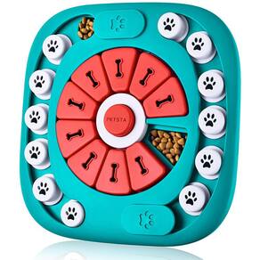 - ??🐶🐱?3 MANEIRAS DE BRINCAR, ATUALIZAR O SLOW FEEDER?Nossos brinquedos de estimulação mental para cães têm um botão de chiar exclusivo no meio, o que torna mais fácil atrair a atenção de cães e gatos. Três designs de dificuldade diferentes e o design do dispensador de guloseimas para cães de 24 orifícios maximizam o tempo de alimentação lento, mesmo além de 20 minutos.