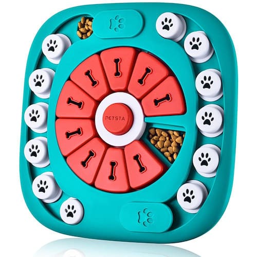 - ??🐶🐱?QUEBRA-CABEÇA PARA CÃES COM PEÇAS NÃO REMOVÍVEIS?Nosso quebra-cabeça para cães é feito de materiais não tóxicos, muito duráveis e adequados para animais de estimação brincarem por muito tempo. Este brinquedo para cães não tem partes removíveis porque o design tem peças de brincar embutidas que se dobram firmemente e não caem facilmente.