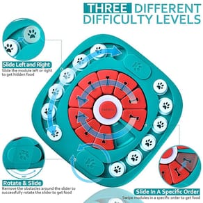 - ??🐶🐱?BRINQUEDOS DIVERTIDOS E ESTIMULANTES?Todos os tipos de cães e gatos adoram o jogo de quebra-cabeça Spin & Slide e Seek & Hide com seu olfato e habilidades com as patas para encontrar comida. Combinando o jogo de deslizamento de órbita circular e o jogo de deslizamento de órbita linear, cães e gatos inteligentes devem mover o controle deslizante corretamente para obter a recompensa alimentar escondida no labirinto.