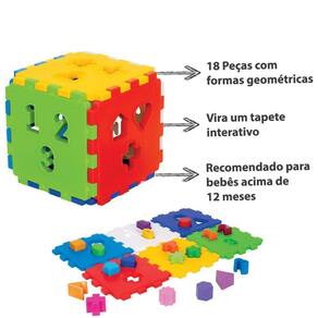 Desmonte o cubo e monte um lindo tapete e comece a brincar com as 18 peças para encaixar.