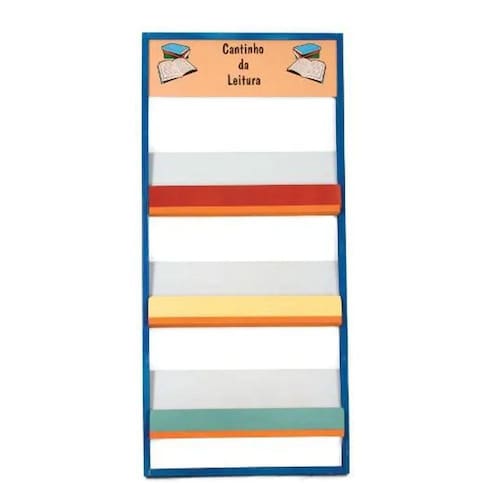 Confeccionado em MDF e madeira, impresso em cores, medindo 1200x550x45mm. Utilizado para armazenar livros de literatura, tabloides, poesias, jornais e revistas. Acondicionado em caixa de papelão