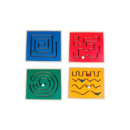 Conjunto confeccionado em madeira, contendo 04 painéis de estimulação com diferentes formatos e movimentos. Acondicionado em caixa de papelão. Produto de qualidade comprovada.