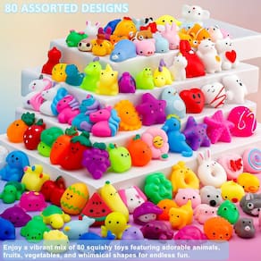 Adicione um toque de diversão e charme à hora de brincar do seu filho com os Resumplan Mochi Squishies. Estes brinquedos macios são adoravelmente projetados, proporcionando diversão interativa que as crianças adoram. Feito de materiais não tóxicos, eles oferecem um ambiente de jogo seguro e envolvente. Quando os níveis de desconforto ou ansiedade aumentam, esses brinquedos podem servir como ferramentas úteis, fornecendo uma saída para a energia nervosa. Além disso, seu design fofo os torna a escolha ideal para presente de aniversário, prêmios de sala de aula e todos os brindes de festa, garantindo um evento memorável para todos os participantes. As esponjas Resumplan também são fáceis de limpar, permitindo brincadeiras contínuas e sem preocupações. Escolha Resumplan Mochi Squishies para uma deliciosa mistura de diversão, segurança e alívio do desconforto. - Pacote a granel: Obtenha 80 peças de brinquedos macios e fofos de mochi em designs e cores variados - perfeitos para lembrancinhas de festa, prêmios e alívio do desconforto. - Uso versátil: estes brinquedos kawaii são ótimos brinquedos sensoriais, analgésicos, decorações e acessórios imaginativos para crianças e adultos. - Lembranças de festa ideais: encante os convidados em aniversários, Halloween, Páscoa, Natal e eventos de sala de aula com estes divertidos brindes de festa colecionáveis. - Macio e elástico: Feito de material TPR de alta qualidade, não tóxico, estes esponjosos são macios, elásticos e duráveis para um prazer duradouro. - Designs diversos: de animais fofos a petiscos de aparência deliciosa, este conjunto oferece uma ampla variedade de adoráveis designs macios de mochi para colecionar e trocar. - Fácil de limpar: as crianças podem ser bagunçadas, mas isso não é um problema com os moles Resumplan Estes brinquedos macios para crianças são super fáceis de limpar, para que seus filhos possam aproveitar a hora de brincar sem preocupações.