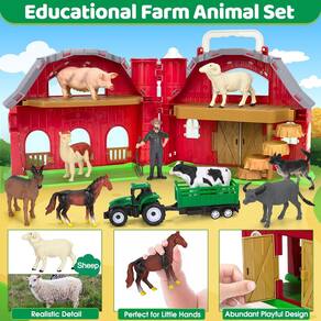 Conjunto de brinquedos de fazenda divertido e educativo: o pacote inclui um grande celeiro vermelho e 10 estatuetas de plástico para brincar na fazenda (1 porco, 1 vaca, 1 touro, 1 cavalo, 1 cabra, 1 cachorro, 1 ovelha, 1 alpaca, 1 brinquedo trator verde e um fazendeiro com pá). Estes animais de fazenda com designs realistas e fofos são perfeitos para brincar sem tela e para apresentar fatos sobre animais em idade pré-escolar de 1 a 5 anos. Ótimo para interação entre pais e filhos e atividades de aprendizagem pré-escolar no jardim de infância. - Conjunto de brinquedos de fazenda divertido e educativo: o pacote inclui um grande celeiro vermelho e 10 estatuetas de plástico para brincar na fazenda (1 porco, 1 vaca, 1 touro, 1 cavalo, 1 cabra, 1 cachorro, 1 ovelha, 1 alpaca, 1 brinquedo trator verde e um fazendeiro com pá). Estes animais de fazenda com designs realistas e fofos são perfeitos para brincar sem tela e para apresentar fatos sobre animais em idade pré-escolar de 1 a 5 anos. Ótimo para interação entre pais e filhos e atividades de aprendizagem pré-escolar no jardim de infância. - Seguro e durável: os brinquedos de animais Ellinjan para crianças com celeiro são feitos de materiais ABS de alta qualidade que não são tóxicos, livres de BPA e inodoros. Cumpra as normas de segurança dos EUA para brinquedos infantis. Os brinquedos de plástico para animais com tamanho perfeito para mãos pequenas são duráveis, mas leves, para que não quebrem mesmo que caiam no chão. Ótimos brinquedos educativos de aprendizagem para meninos de 2 a 4 anos. - Vários pontos de brincadeira para aprendizagem: os conjuntos de brinquedos de fazenda Ellinjan são ótimos para crianças de 1 a 3 anos, aprimorando o vocabulário, as habilidades linguísticas, o pensamento criativo e o aprendizado cognitivo ativo. Portas, escadas e grades em nossa casa de celeiro são móveis, o que aumenta a diversão interativa. Pequenos animais podem se encaixar perfeitamente nos celeiros e no trator, permitindo que as crianças aprendam a "colocar", "retirar" e "abrir" e "fechar" no processo e desenvolver suas habilidades motoras finas. - Portátil e fácil de armazenar: os brinquedos de animais de fazenda Ellinjan para crianças de 3 a 5 anos são suficientes para 2 a 3 jogadores desfrutarem de brincadeiras imaginativas juntos. Quando a hora de brincar acabar, basta guardar os conjuntos de brinquedos da fazenda no celeiro. Leve e fácil de transportar. Brinquedo infantil perfeito para crianças de 1 a 3 anos, seja para educação/terapia da fala ou para viagens. - Dê o presente de aprendizagem: perfeito como presente para meninos ou meninas de 1 2, 3, 4 5 anos de idade em feriados, dia das crianças, aniversário, ação de graças, Natal e ano novo ou para pequenos artigos de festa para amantes de animais. Somos uma empresa familiar que oferece uma ampla variedade completa de brinquedos pré-escolares que são tão divertidos quanto educativos. Se, por qualquer motivo, sua compra exigir serviço ou você tiver dúvidas, diretamente com a Amazon para uma substituição/reembolso, ou .
