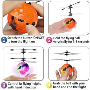 - Luz LED colorida brilhante: a bola voadora RC é equa com luzes LED RGB internas que fornecem lindas cores que mudam infinitamente ao voar. Quando está ligado, o brinquedo voador de LED pode se acender sozinho no escuro. É fácil para meninos e meninas perseguirem, encontrarem e agarrarem.