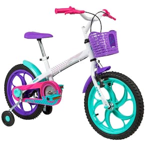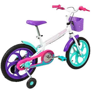 Com a Bicicleta Aro 16 Caloi Ceci - Branca/Roxa os pequenos ciclistas estão prontos para a brincadeira! O design da Caloi Ceci é delicado e cheio de detalhes. Ela possui para-lamas que protege de respingos em áreas molhas, cobre corrente e selim personalizado com quick release para oferecer o ajuste perfeito à altura de cada baixinho. Segurança é tão importante quanto à diversão! Por isso, a Bike é equipada com freio dianteiro Cantilever, freio traseiro Tambor e rodinhas laterais. A Bicicleta Ceci da Caloi é feita especialmente para crianças que querem se divertir!