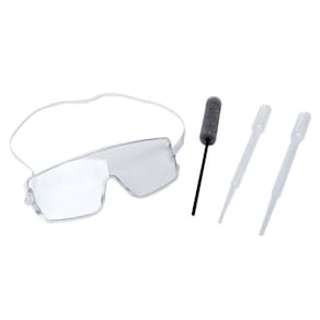 Aqui o assunto é sério, por isso vem como manual indicando as normas de segurança, assim como nos laboratórios de verdade. Aí é só a criança preparar a bancada, colocando a estante com os 4 tubos de ensaio, os frascos de reagentes, o óculos de segurança e as pipetas. Pronto, as experiências já podem começar.