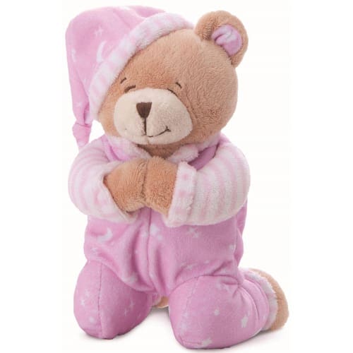 Um lindo ursinho de pelúcia, que ao pressionar sua barriguinha ele reza: Anjinho da guarda, meu bom amiguinho, me leve sempre pelo bom caminho.
