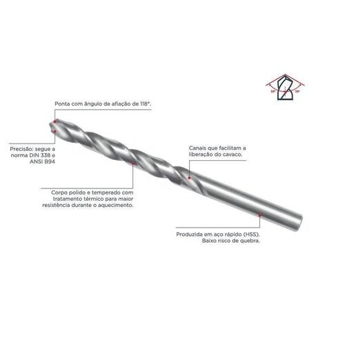 A Broca de Aço Rápido 4,5 mm é perfeita para os profissionais que trabalham com perfuração de metais ferrosos e não ferrosos, como aço, alumínio, cobre e outros. Com a qualidade Cortag, você tem a de um produto de alto desempenho. Essa broca possui uma ponta com ângulo de afiação de 118º, seguindo as normas DIN338 e ANSI B94, o que garante sua precisão. Além disso, seu corpo é polido e temperado com tratamento térmico, o que proporciona maior resistência durante o aquecimento. Uma característica importante dessa broca é a presença de canais que facilitam a liberação do cavaco, evitando entupimentos e garantindo um trabalho mais eficiente. Ela é produzida em aço rápido HSS , o que reduz o risco de quebra e aumenta sua durabilidade. Com medida de 4,5 mm, esse pacote contém 10 peças, sendo ideal para quem precisa de um de brocas para diferentes trabalhos. O código 61917 garante a identificação correta do produto. Essa broca de aço rápido é a escolha certa para quem busca qualidade, precisão e durabilidade. Adquira já a sua e tenha em mãos uma ferramenta indispensável para seus trabalhos de perfuração em metais.