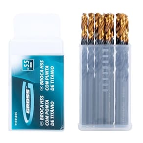 Especificações Material de usinagem: Metal, Plástico País de fabricação: China Diâmetro: 5,5mm Itens Inclusos 10 Brocas de Aço Rápido 5,5mm Perguntas Frequentes (FAQ) Pergunta: Em quais materiais posso utilizar esta broca?
