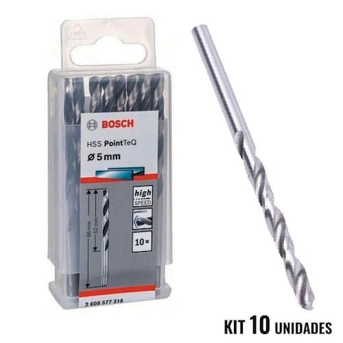 Broca Aço Rápido HSS 5,0 MM PointTeQ Kit 10 Unidades BOSCH