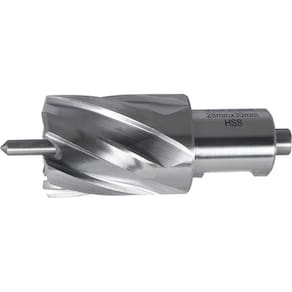 Aplicação: Indicada para metais, desenvolvida para furadeiras de base magnética. Não fazer furo guia. Utilizar o pino guia que tem a função de fazer o acionamento do óleo para refrigerar a broca. Centralizar o furo e tirar o tarugo de dentro da broca.