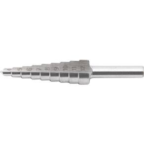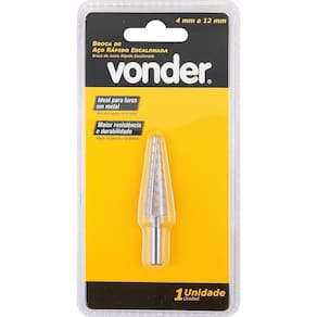 Permite obter diversos diâmetros com apenas uma broca, dispensando a necessidade de intercambiar a ferramenta. Produzida em aço rápido, proporcionando maior resistência e durabilidade.
