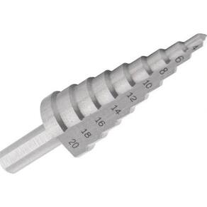 Broca de aço rápido escalonada, 4 mm a 20 mm, VONDER 53.44.420.000 Conteúdo da Embalagem: 1 Broca escalonada Indicada para metais Permite obter diversos diâmetros com apenas uma broca, dispensando a necessidade de intercambiar a ferramenta. Produzida em aço rápido, proporcionando maior resistência e durabilidade. Material da broca:Aço rápido Capacidade:4 mm, 6 mm, 8 mm, 10 mm, 12 mm, 14 mm, 16 mm, 18 mm e 20 mm Diâmetro da haste da broca:8,0 mm Comprimento de corte da broca mm :51,5 mm Comprimento total da broca mm :73,0 mm Massa aproximada Kg :470 g Garantia - E CDC :Garantia legal: 90 dias Ean: 7893946580896