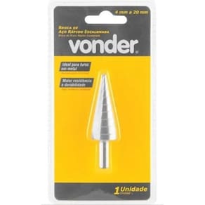 Broca de aço rápido escalonada, 4 mm a 20 mm, VONDER 53.44.420.000 Conteúdo da Embalagem: 1 Broca escalonada Indicada para metais Permite obter diversos diâmetros com apenas uma broca, dispensando a necessidade de intercambiar a ferramenta. Produzida em aço rápido, proporcionando maior resistência e durabilidade. Material da broca:Aço rápido Capacidade:4 mm, 6 mm, 8 mm, 10 mm, 12 mm, 14 mm, 16 mm, 18 mm e 20 mm Diâmetro da haste da broca:8,0 mm Comprimento de corte da broca mm :51,5 mm Comprimento total da broca mm :73,0 mm Massa aproximada Kg :470 g Garantia - E CDC :Garantia legal: 90 dias Ean: 7893946580896