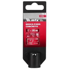 Especificações País de fabricação: China Altura na embalagem: 40 Comprimento na embalagem: 630 Peso bruto: 0.475 Largura na embalagem: 13 Placa de corte: Liga de carboneto de tungstênio VK8 Dureza da placa de corte: 80-90 HRC Sistema de encaixe: SDS Max Itens Inclusos 1 Broca Concreto SDS Max 12x540mm MTX Perguntas Frequentes (FAQ) Pergunta: Qual o tipo de material que posso furar com esta broca?