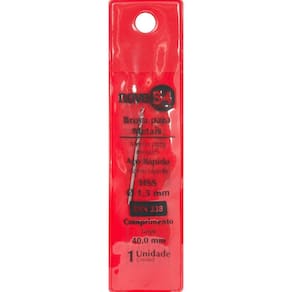 Marca: Nove54Conteúdo da Embalagem:1 Broca de aço rápido DIN 338Destaques e diferenciais:Produzida em aço rápido, proporcionando maior durabilidadeAplicações e dicas de uso:Indicada para metais ferrosos e não ferrosos. Para aumentar a vida útil da broca, recomenda-se utilizar fluído/óleo de corte para lubrificação e resfriamento. Uso leve.Características Técnicas:Diâmetro da broca mm : 1,50 mm Comprimento total da broca mm : 40,0 mm Norma.: DIN 338 Marca: Não Informado