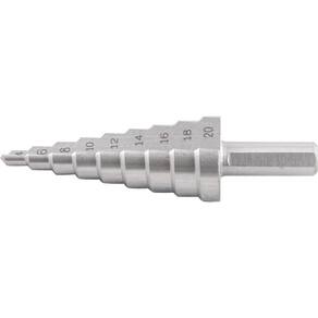 Permite obter diversos diâmetros com apenas uma broca, dispensando a necessidade de intercambiar a ferramenta. Produzida em aço rápido, proporcionando maior resistência e durabilidade.