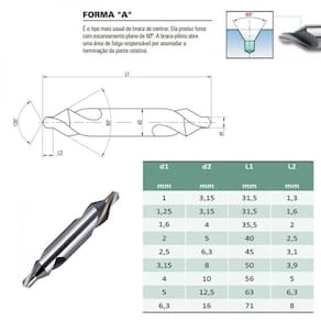 - É o tipo mais usual de broca de centrar, produzindo furos com escareamento plano de 60;