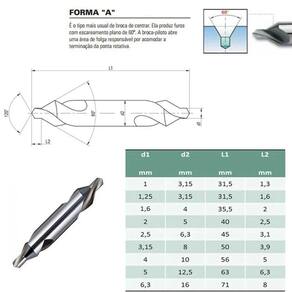 - É o tipo mais usual de broca de centrar, produzindo furos com escareamento plano de 60;