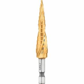 DEWALT Broca de degrau, pronta para impacto, 0,6 cm (1/8 polegada-1/2") (DWA1783IR) - O design espiral de duas flautas revestidas de nitreto de titânio oferece vida útil mais longa e melhor remoção de cavacos para o conjunto de brocas DEWALT - Ponta de ponta dividida da broca aumenta a velocidade - Números gravados a laser aumentam a visibilidade do passo - Haste hexagonal de 6 mm (1/4") - Otimizado para uso do driver de impacto