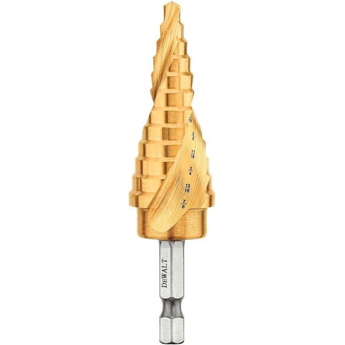 DeWALT dwa1786ir 3/16-inch-7/de Impacto Pronto Step Broca da DeWALT - Titanium Nitride Coated two flute spiral design provides longer life and better chip removal - Split point tip increases speed - Laser engraved numbers increases step visibility - Optimized for impact driver usage