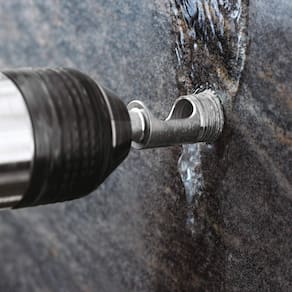 DEWALT DW5584 Broca de diamante de 2,5 cm (1") - Ponta soldada de diamante: maior vida útil e durabilidade para uso duradouro - Rosca espiral reversa: alimentação contínua de água para maior vida útil da broca e maior velocidade - Slot de ejeção do núcleo: remove o plugue para furos repetitivos sem interrupção - Acabamento sem revestimento: adequado para uso em superfícies de azulejo, porcelana e vidro - Design de flauta espiral: remoção eficaz de cavacos e perfuração estável