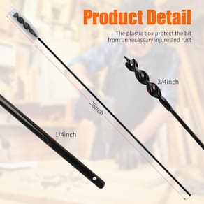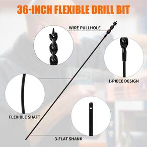 Broca instaladora para puxar fios através de espaços apertados com danos mínimos de 9,5 cm por 91 cm - Revestimento de óxido preto: nossas brocas apresentam eixos revestidos oxidados pretos e para maior dureza, durabilidade e resistência à ferrugem. - Tamanho da broca: a parte de trabalho da cabeça tem 1,9 cm diretamente, a haste de 1/10.2 cm se encaixa na maioria das furadeiras elétricas, o comprimento total é de 91,4 cm. - Flexibilidade: dobra, torce, vira e pode ser utilizado em espaços apertados. Flexibilidade máxima de 90. - Você pode passar facilmente metal ou outros fios através de aberturas de parede em qualquer direção sem danificar a parede, e o design exclusivo não permitirá que os fios se enrolem ou deslizem. - Aplicação mais ampla: a abertura pontiaguda da cabeça do cortador é projetada para ser ideal para colocar cabos e vários fios em paredes e tetos acabados.