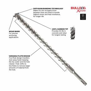 BOSCH HC2097 9/40.6 cm x 40.6 cm x 45.7 cm Bulldog SDS-Plus Broca de martelo rotativo - Processo de brasagem e endurecimento otimizado para longa vida útil - 15% mais rápido (em comparação com S4L) - Bosch A ponta de carboneto feita é mais resistente e durável sob cargas pesadas - O processo de endurecimento Bosch exclusivo resulta em mais furos por bit - Ideal para aplicações de ancoragem e furos de passagem em concreto