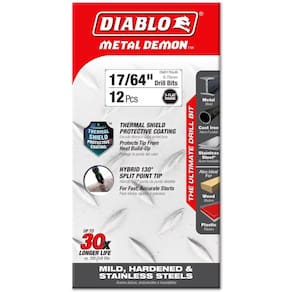 Broca Diablo Metal Demon con Recubrimiento Protector Thermal Shield para Acero Suave, Endurecido y Acero Inoxidable - 11 cm de Largo, 6,7 mm de Diámetro, vástago de 3 caras - DMD1764JB. Solución Todo en Uno para Perforar Metal: la primera broca de la industria diseñada para perforar acero suave, endurecido y acero inoxidable, eliminando la necesidad de múltiples tipos de brocas como Titanio, Cobalto y Óxido Negro. Durabilidad y Longevidad Inigualables: el Recubrimiento Protector Thermal Shield crea una barrera resistente al calor de múltiples capas, extendiendo la vida útil de la broca hasta 30 veces más que las brocas tradicionales para metal. Perforación Más Rápida y Eficiente: el proceso de rectificado CNC de punta asegura tolerancias angulares precisas, reduciendo el desgaste de la broca y permitiendo velocidades de perforación hasta 2 veces más rápidas que otras brocas. Precisión en el Inicio Cada Vez: la punta híbrida dividida a 130° proporciona inicios rápidos y precisos tanto en taladros estacionarios como portátiles, evitando desplazamientos y asegurando agujeros exactos. Productividad Maximizadaa: el diseño optimizado de las espirales elimina los residuos más rápido y mantiene la punta más fresca, permitiendo a los profesionales perforar hasta un 50% más de agujeros por carga de batería, ahorrando tiempo y aumentando la eficiencia.
