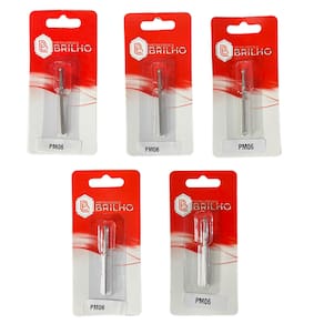 O kit contém 5 brocas diamantadas modelo PM 006 Brilho, no formato esférico de diâmetro médio. São indicadas para procedimentos de podologia, manicure e nail design, ideais para limpeza de sulcos, elevação de cutícula e acabamento em áreas delicadas.